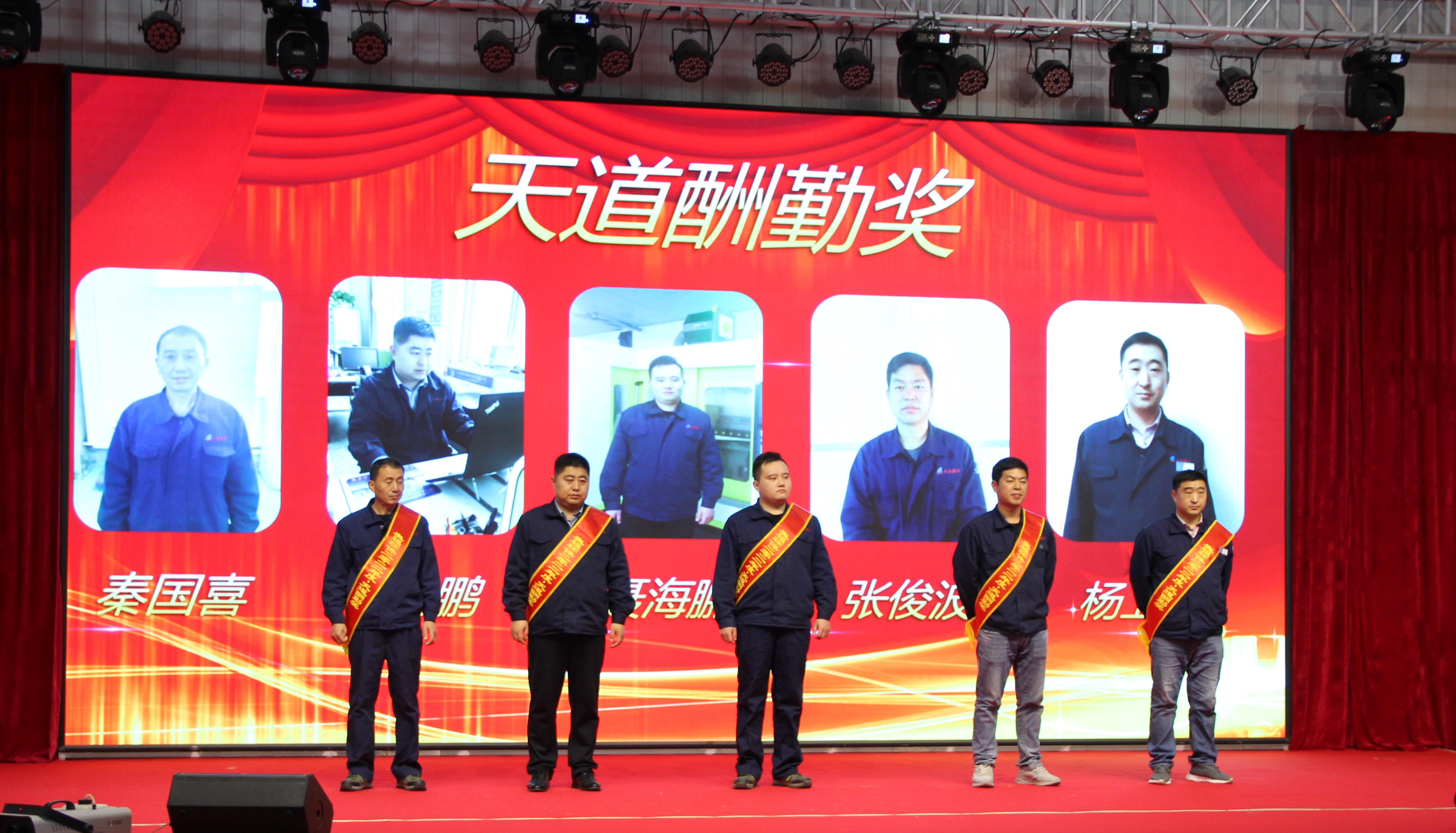 公司給在奧福工作滿10年的員工頒發(fā)“天道酬勤”獎(jiǎng)牌、榮譽(yù)證書及現(xiàn)金紅包。